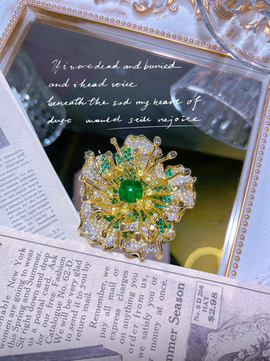 Monet Garden Mojito Emerald Flower Centre Brooch