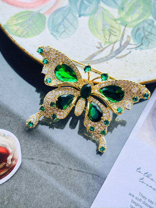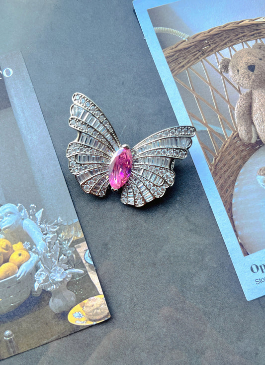 Kardashian Pink Zircon Butterfly Heart Brooch