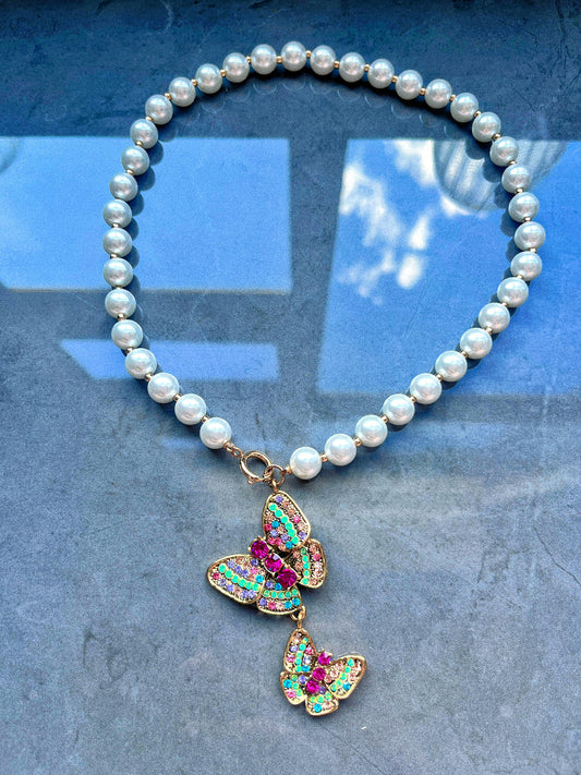Artificial Chalcedony Bouquet Egg-Shaped Zircon Necklace