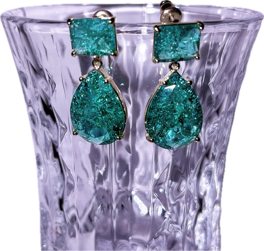 Meteor Tear Drop Emerald Crackle Notice Droplet Earrings