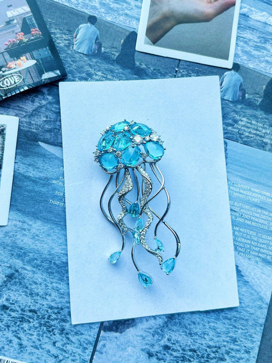 Sapphire Jellyfish Tassel Brooch