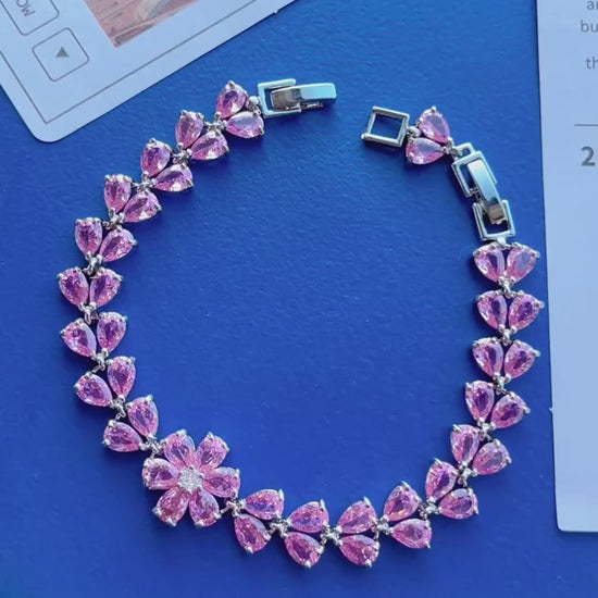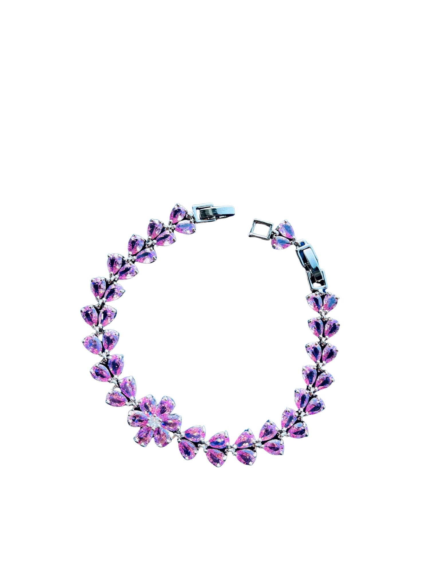This bracelet is a tribute to romance and craftsmanship. The petal - shaped pink crystals, with their brilliant sparkle, are beautifully complemented by the smooth silver - toned links, creating a look that's both gentle and eye - catching. Lightweight and comfortable, it's designed to be a dazzling addition to any ensemble, whether you're heading to a dinner date or adding a touch of glamour to your casual wear.