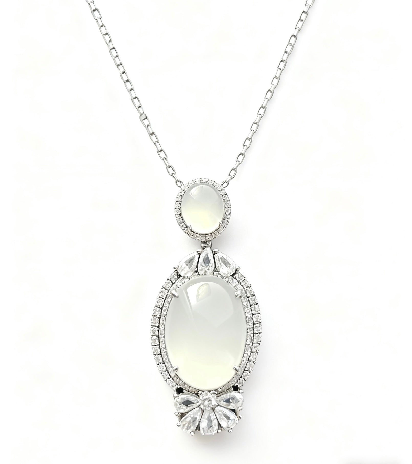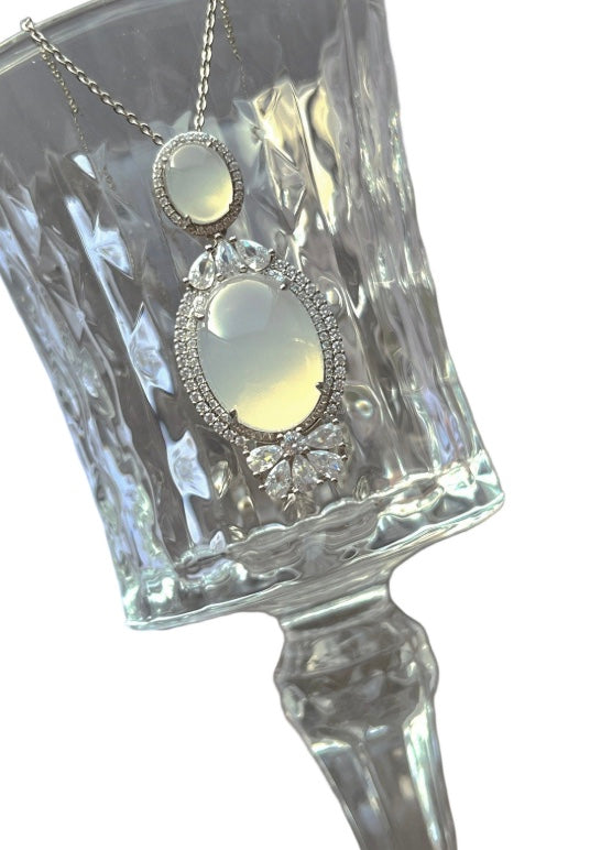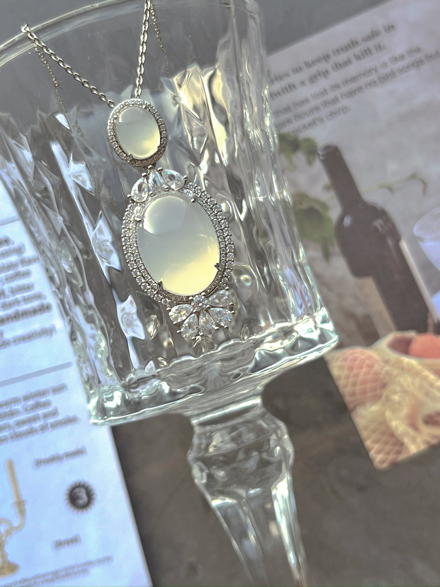 Artificial Chalcedony Bouquet Egg-Shaped Zircon Necklace